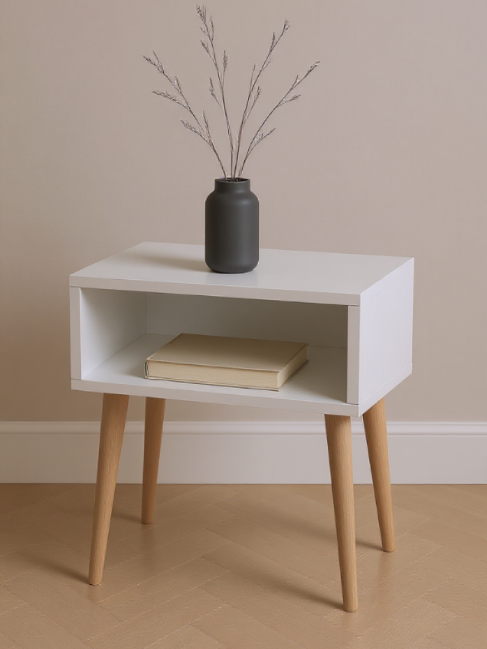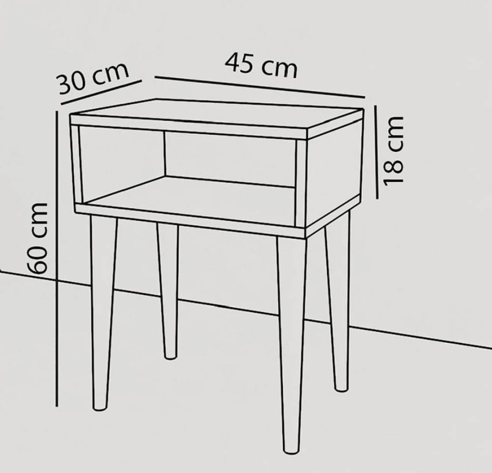 Doğal ve şık tasarım: İskandinav esintili sade görünüm Çok yönlü kullanım: Yatak odasında komodin, salonda yan sehpa, ofiste raf olarak kullanılabilir Dayanıklı yapı: Kaliteli MDF gövde, masif görünümlü sağlam ayaklar Açık raf bölmesi: Kitap, aksesuar veya saklama kutusu için ideal 6 ay garantisiyle güvenle kullanabileceğiniz bu komodin, kalite standartlarına uygun olarak üretilmiştir.